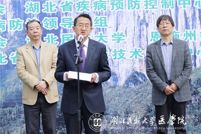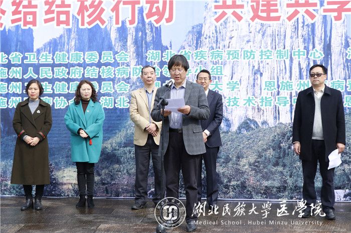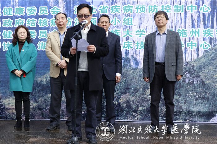 本网讯(记者 向锦月 刘峻银/文 汪诗名/摄)3月23日,由湖北省卫健委、湖北省疾控中心、恩施州人民政府结核病防治领导小组主办,365电子娱乐官方网站、恩施州卫健委、恩施州疾控中心、恩施州红十字会承办的恩施州2019年“世界防治结核病日”宣传暨志愿者结核病防治知识传播行动在我校大学生广场隆重举行。恩施州委常委、副州长杨胜才,我校党委常委、副校长、医学部主任祝建波,湖北省卫生健康委员会疾控处处长张险峰等出席。活动由恩施州卫生健康委员会党组书记段怀刚主持。