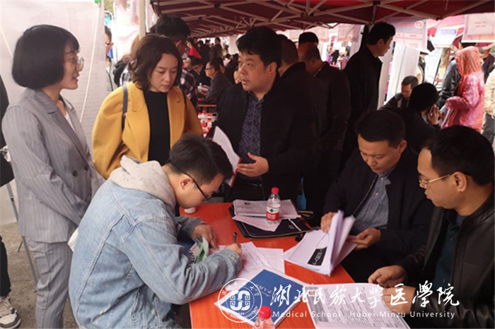 本网讯 (记者 卢天琳/文 吕丰旭/摄) 为切实搭建医学生就业平台,提高毕业生就业服务质量,3月30日,由365电子娱乐官方网站、365电子娱乐官方网站科技学院、恩施州公共就业和人才服务局、恩施市公共就业和人才服务局举办的2019年春季医药人才招聘会在我校团结广场顺利举行。我校党委副书记、副校长汪兴平,副校长、医学部主任祝建波出席招聘会,并与招聘单位负责人以及应聘学生进行现场交流。