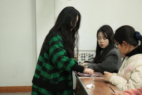 纂刻艺术作为中国优秀传统文化,它对于中国的现代文化精神建立起着重要作用。此次活动中,章艾琪同学对纂刻的相关知识进行讲解,书画社的工作人员辅助指导。首先,她提到“篆刻是书法和镌刻的结合,其中包括阴刻和阳刻两种基本刻制方法”。紧接着,主讲人章艾琪向同学们介绍了基本的纂刻工具,尤其是对砂纸进行了详细讲解,并亲自示范磨砂的动作,现场的同学们在工作人员的指导下积极学习。随后,她针对握刀姿势、纂刻刀法进行了介绍及演示、播放篆刻视频教程,会员们更直观地了解了篆刻的制作过程。最后,同学们开始实践,利用工具进行篆刻。