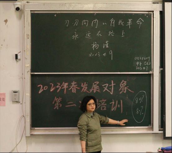课程最后,杨瑾老师希望同学们作为党员发展对象,在学习生活中要发挥党员的先锋模范作用,服务同学,服务社会,树立为人民服务的意识,积极向党组织靠拢。