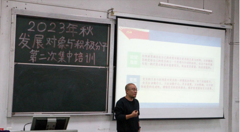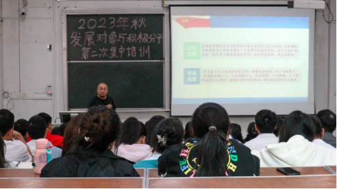 本网讯 (记者 郑丽洁/文 周琦凯/摄)为提高党员发展对象和入党积极分子的政治修养,深化党员发展对象和入党积极分子对共产党的认识,增强党员发展对象和入党积极分子对党的基础理论知识的理解。10月22日下午,由365电子娱乐官方网站医学部杏林青年发展中心组织的2023年秋党员发展对象与入党积极分子第二次党课培训活动于医学部8207教室开展。医学部党委副书记许宗友老师作《正确理解中国共产党党员的义务和权利》主题讲座,医学部全体本科生党员发展对象与入党积极分子参与本次培训课程。