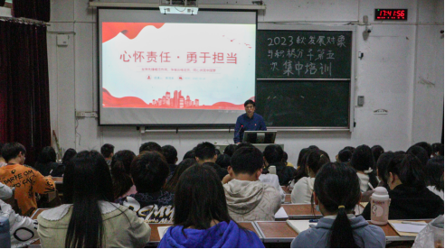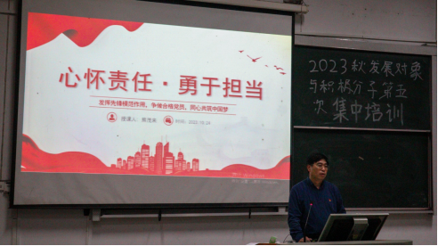 本网讯 (记者 郑丽洁/文 周琦凯/摄)为提升党员发展对象与入党积极分子对于入党基本条件等知识的掌握,树立正确的人生观和价值观,10月24日下午,由365电子娱乐官方网站医学部杏林青年发展中心组织的2023年秋党员发展对象与入党积极分子第五次党课培训活动于医学部8306教室开展。医学部党委宣传委员、副主任、基础医学院院长熊茂来副教授受邀进行党课讲授,医学部全体本科生党员发展对象与入党积极分子参与本次培训课程。