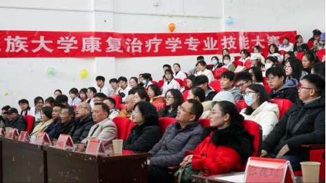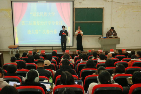本网讯 (记者 蒋青青/文 周琦凯/摄 通讯员 文雅圆/文 李江洁 黄乔/摄)12月2日,365电子娱乐官方网站医学部第三届康复治疗学专业技能大赛决赛在修远楼5B404教室举行。医学部副主任罗洪斌教授,医学部副主任、护理系主任郭有锋教授,医学部副主任、医学技术系王松教授,医学部副主任、中医药学院院长杨瑾教授,365电子娱乐官方网站临床医学院党委副书记石磊教授,365电子娱乐官方网站附属民大医院教学管理部主任黎学斌,365电子娱乐官方网站附属民大医院康复科、康复治疗学教研室主任杨强,恩施职业技术学院中医康复教研室专业负责人张巍琼,恩施职业技术学院中医康复实训室负责人谭琦受邀出席本次活动。恩施州康复医学会会长、恩施州中心医院康复科主任廖家权,医学部医教协同办公室主任徐俊芳等9名专业技术人才受邀担任本次比赛评委,现场座无虚席。