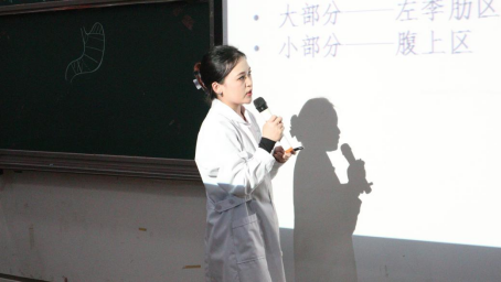 经过初赛的激烈角逐,最终有10名选手入围决赛。本次比赛分为PPT讲解和现场答辩两个环节进行。大赛所讲解的标本涉及脑、子宫、脊髓、胃等,选手们从结构、功能、临床应用三个方面讲解。5号选手匡曼和6号选手黎远跃的选材都是胃,前者主要侧重于讲解胃的常见疾病,后者主要侧重于讲解胃的形态与结构。8号选手刘珊选择讲解的结构是子宫,她用简单易懂的语言向现场观众介绍了子宫的神秘与脆弱。7号选手王琴琴以“每逢佳节胖三斤”巧妙的引出胰腺的功能,她从胰腺的形态与位置、结构及功能三个方面对胰进行了详细的讲解与分析,给大家提供了一些预防胰腺炎的方法。