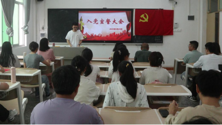 预备党员代表谢冰雪、正式党员代表王四美分别发言,表示将始终牢记党员身份,坚定理想信念,以勤奋学习强本领,以服务同学践初心,切实发挥先锋模范作用,把对党的忠诚融入日常学习与实践中。