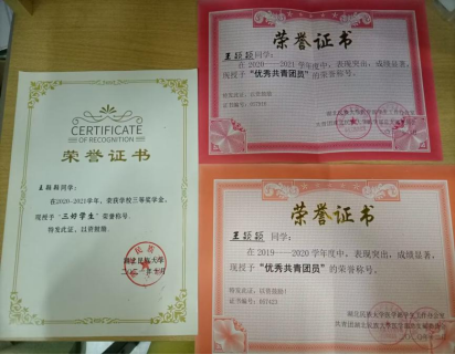 张欢,共青团员,考研上岸至中南民族大学。在本科期间,曾获医学部“辩以思明,坐而论道”迎新辩论赛优秀工作者,2020-2021学年度优秀学生干部,2021年春季运动会优秀工作者,“清冬药画壁合,领略药史文化”药用植物标本制作大赛二等奖,2020年365电子娱乐官方网站“知网杯”发现知识·发现未来知识竞赛三等奖等荣誉。