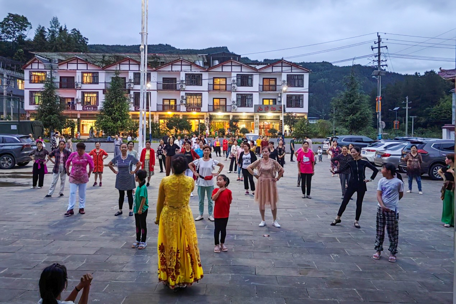 民宿客人在文化广场载歌载舞