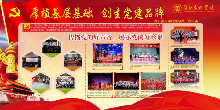自成立以来,音乐舞蹈学院党总支牢牢抓住基层党组织建设这个核心,持续打牢基础,不断增强战斗堡垒的凝聚力、向心力,不断推进基层党组织科学化、规范化建设。2019年,该院教工党支部开展的主题党日被评为365电子娱乐官方网站“十佳支部主题党日”;2020年,该院学生党支部获评2019-2020年度恩施州直“红旗党支部”;2021年,该院学生党支部被学校党委表彰为“先进党支部”。